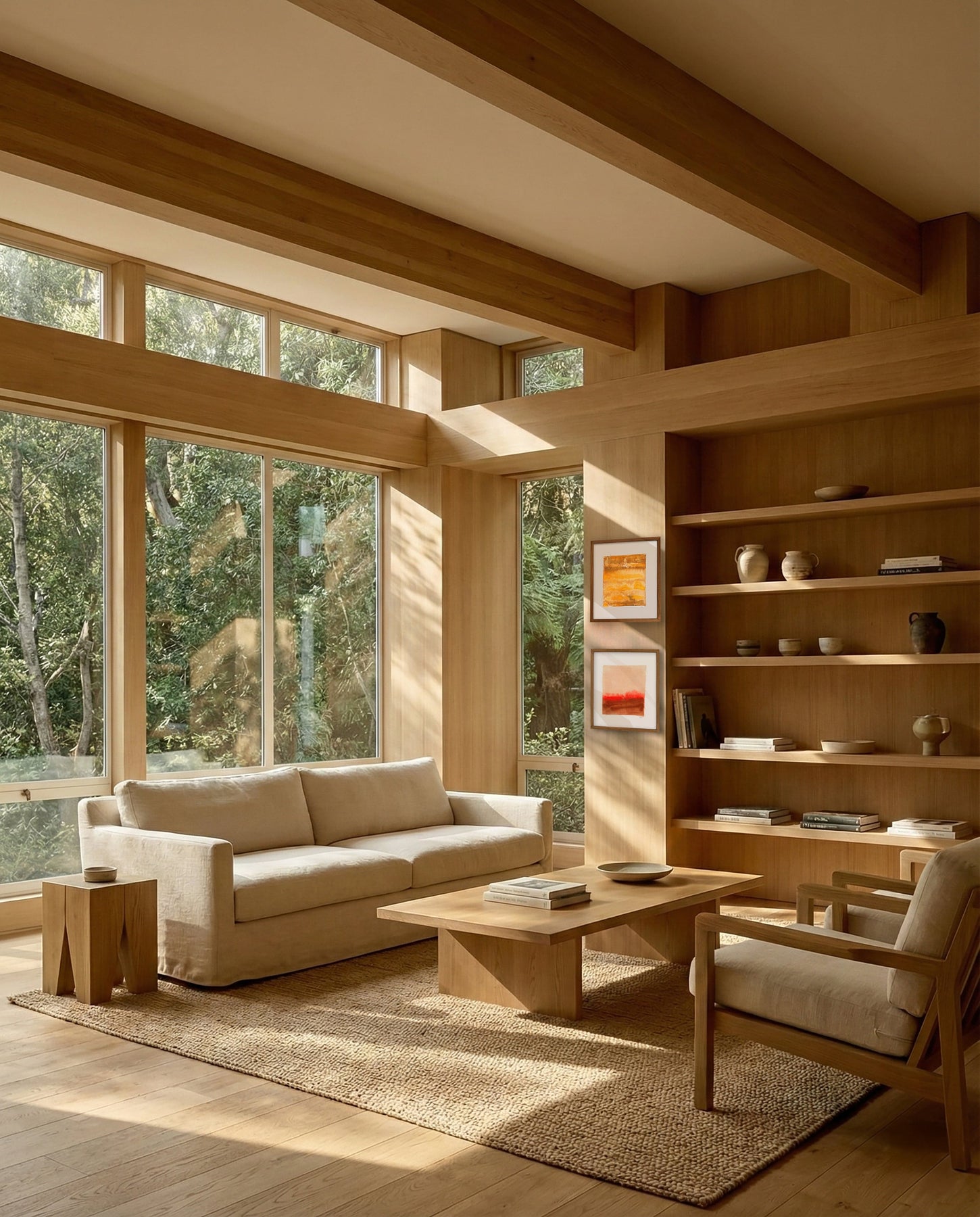Our Ink frame model is an abstract artwork where amorphous shapes and colors come together on linen fabric, adding an organic, joyful, yet sophisticated atmosphere to your home. This model features an original acrylic and watercolor artwork created directly on linen canvas. Unlike our other models, the artwork is placed on top of the mat rather than underneath it, allowing the organic texture of the linen fabric to remain visible. It can be combined with other frame models from our collection. Our frames are made with 3 mm thick glass.
